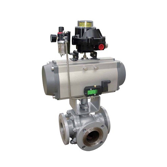 氣動(dòng)三通球閥可分為L型和T型。L型三通球閥用于介質(zhì)流向的切換,能使相互垂直的兩個(gè)通道連通。三通球閥一般采用兩閥座結(jié)構(gòu),亦可根據(jù)用戶要求采用四閥座結(jié)構(gòu)。四閥座密封三通球閥具有造型美觀、結(jié)構(gòu)緊湊合理,它不僅可實(shí)現(xiàn)介質(zhì)流向的切換,也可使三個(gè)通道相互連通,同時(shí)也可關(guān)閉任一通道,使另外兩個(gè)通道連通,靈活控制管路中介質(zhì)的合流或分流。