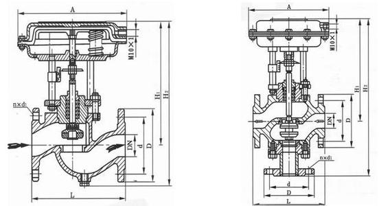 本系列產(chǎn)品有薄膜式、活塞式兩種。閥體結(jié)構(gòu)有單座、套筒、雙座(二位三通)三種,密封形式有填料密封和波紋管密封兩種,產(chǎn)品公稱壓力等級(jí)有PN10、16、40、64四種,公稱口徑范圍DN20~200mm。適用流體溫度由-60~450℃。泄漏量等級(jí)為IV級(jí)或Ⅵ級(jí)。流量特性為快開。