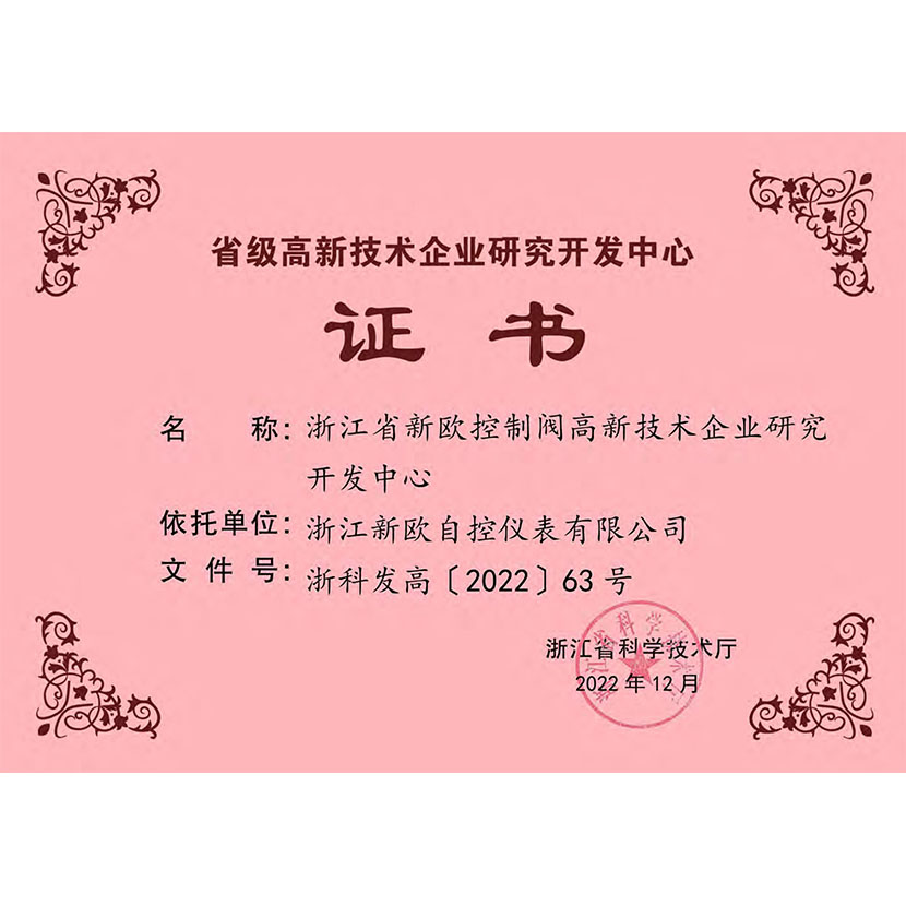 浙江省省級研發中心證書